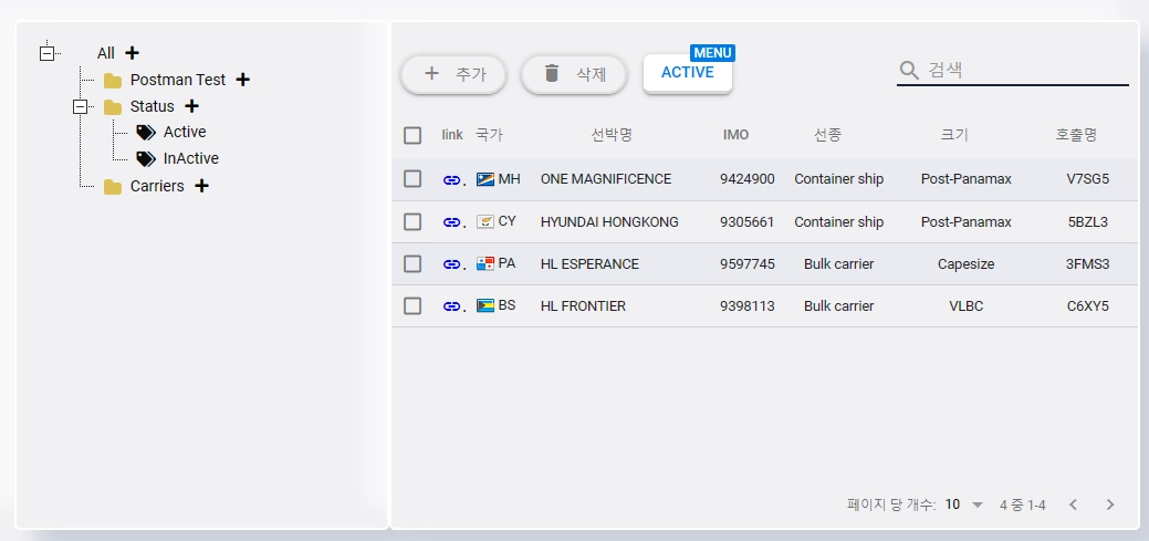 Company에서 관리하는 선박을 등록하여 선박 메뉴를 만듭니다.