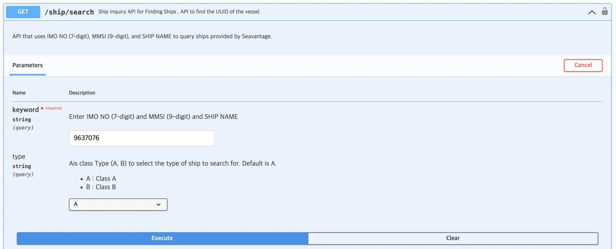 이 API는 IMO 번호(7자리), MMSI 번호(9자리), 선박명을 이용하여 Seavantage에서 제공하는 선박 정보를 조회할 수 있는 기능을 제공합니다.