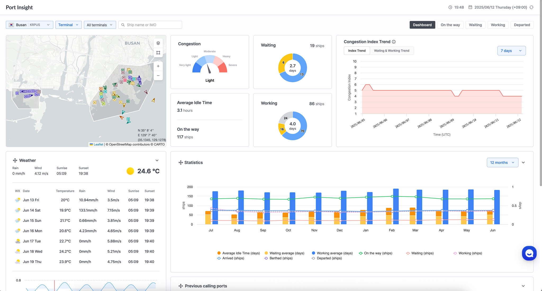 부산 항구의 Port Insight 서비스를 조회합니다.