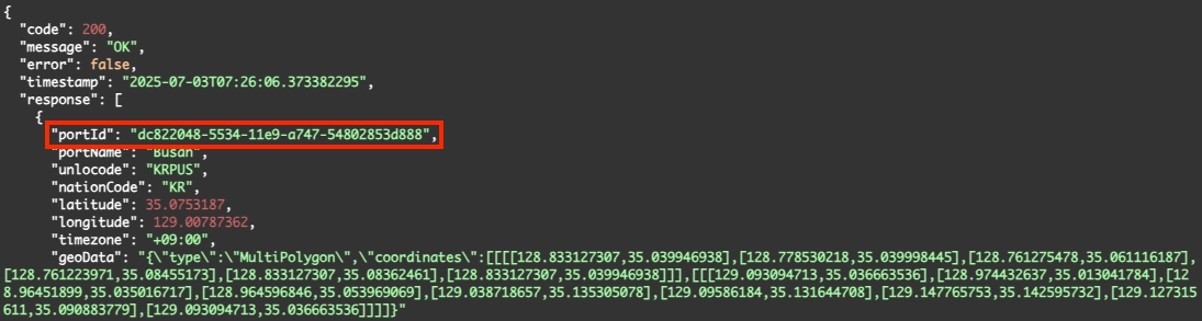 Port ID는 항구 조회 시 응답값으로 반환됩니다.