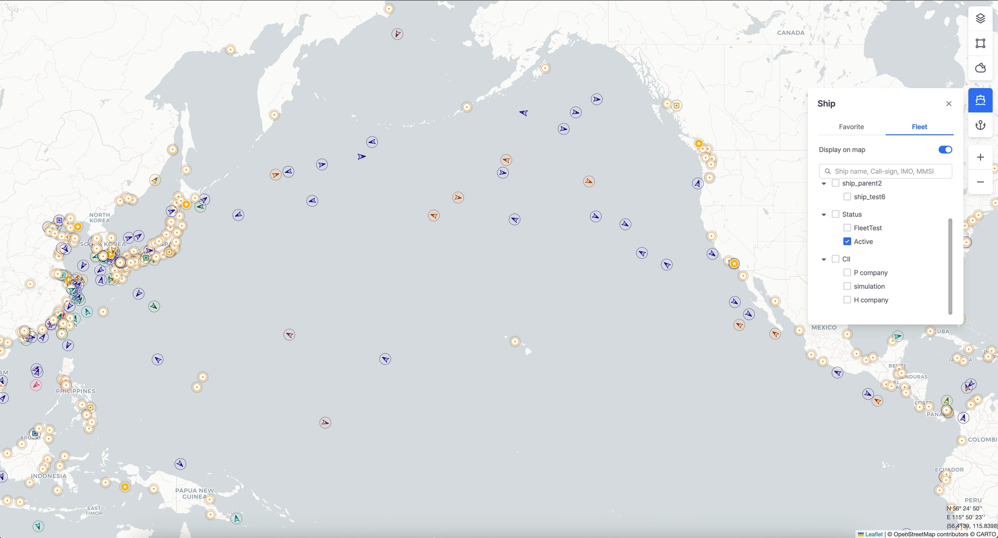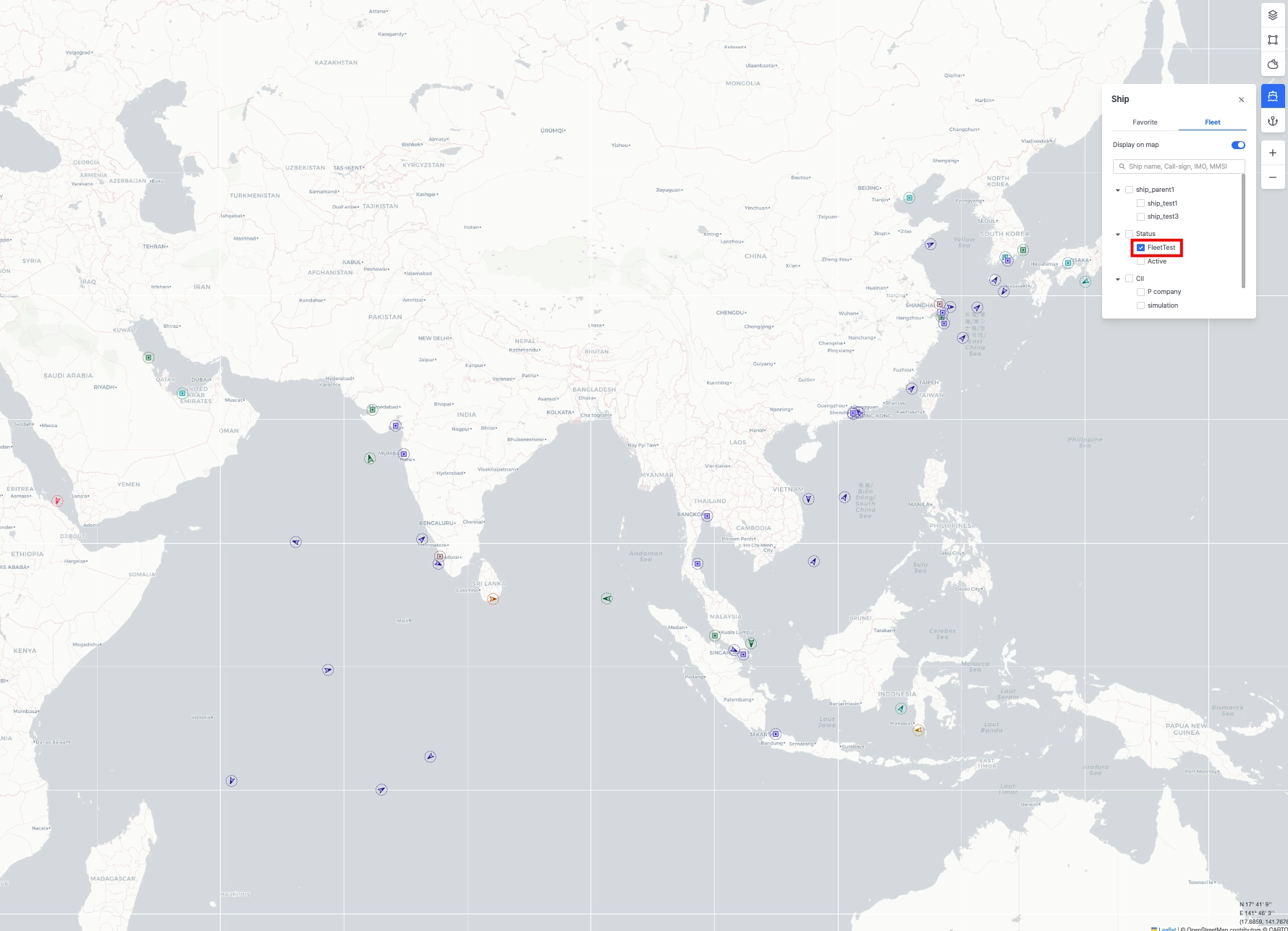 Fleet Active 메뉴에 등록된 선박 목록을 모니터링합니다.