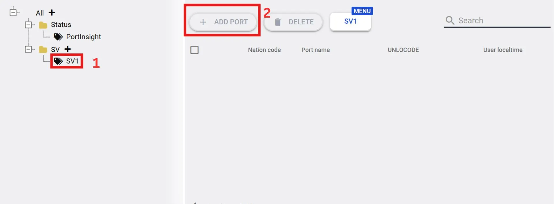 Once the add port pop-up appears, input either the port name or UNLOCODE on the search bar. Tick the port you would like to add and then click the ‘Add Port’ button.