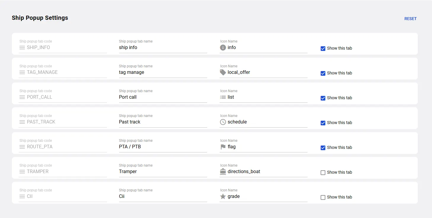 Choose which tabs or information to display in the ship pop-up by selecting "Show this tab.”