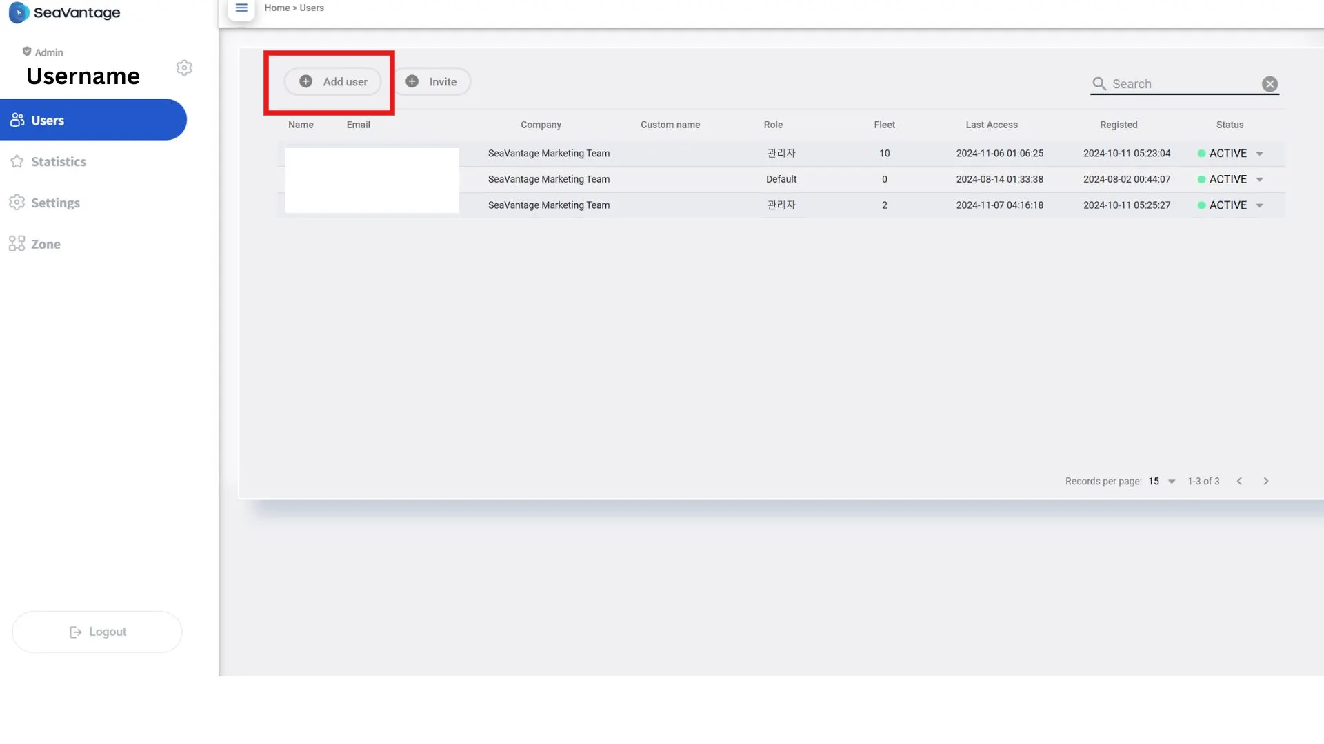 Click on the ‘Invite’ button on the top left (right beside +Add user)