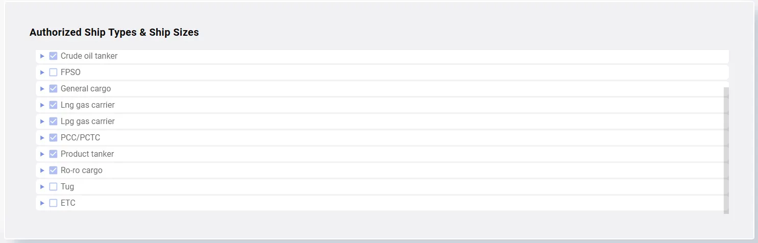 Create ship menu by listing the vessels managed by the Company. The ship menu can be used as a filter on the map.