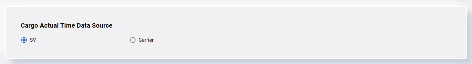 Select whether you want to receive the actual time data source from SeaVantage or from carriers.
