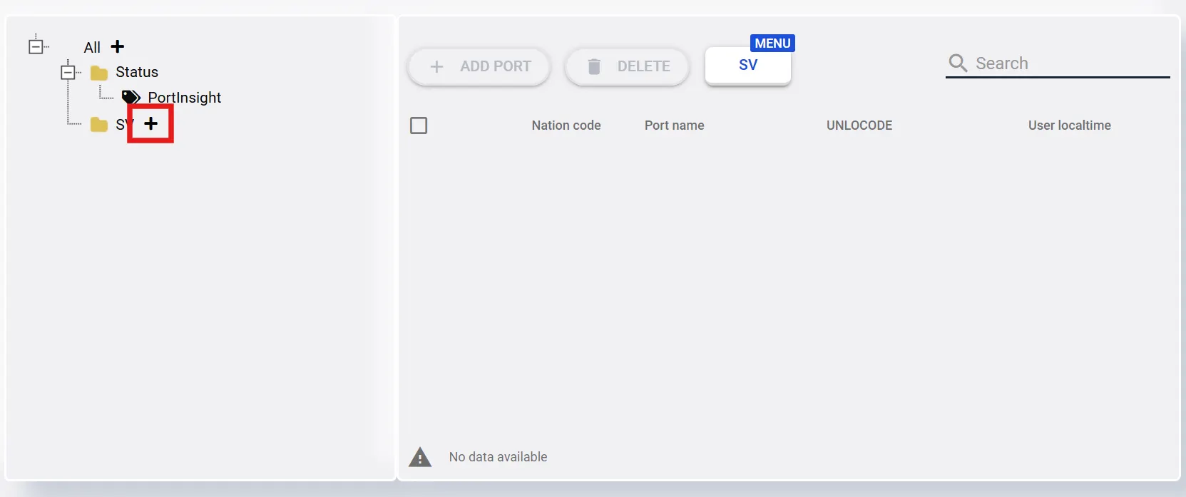 Once port menu is created, click on the ‘+’ button to create a new sub-menu group.