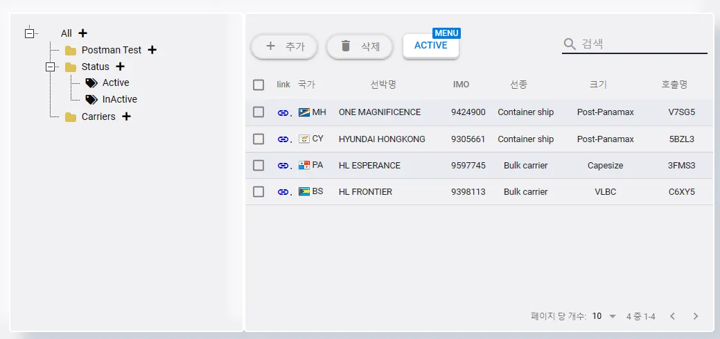 Company에서 관리하는 선박을 등록해 선박 메뉴를 만듭니다.