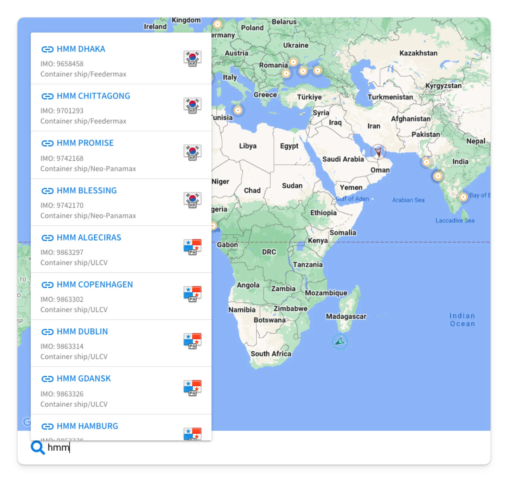 빨강 : 선박 위치를 찾을 수 없어 지도에 표시되지 않음을 의미합니다.