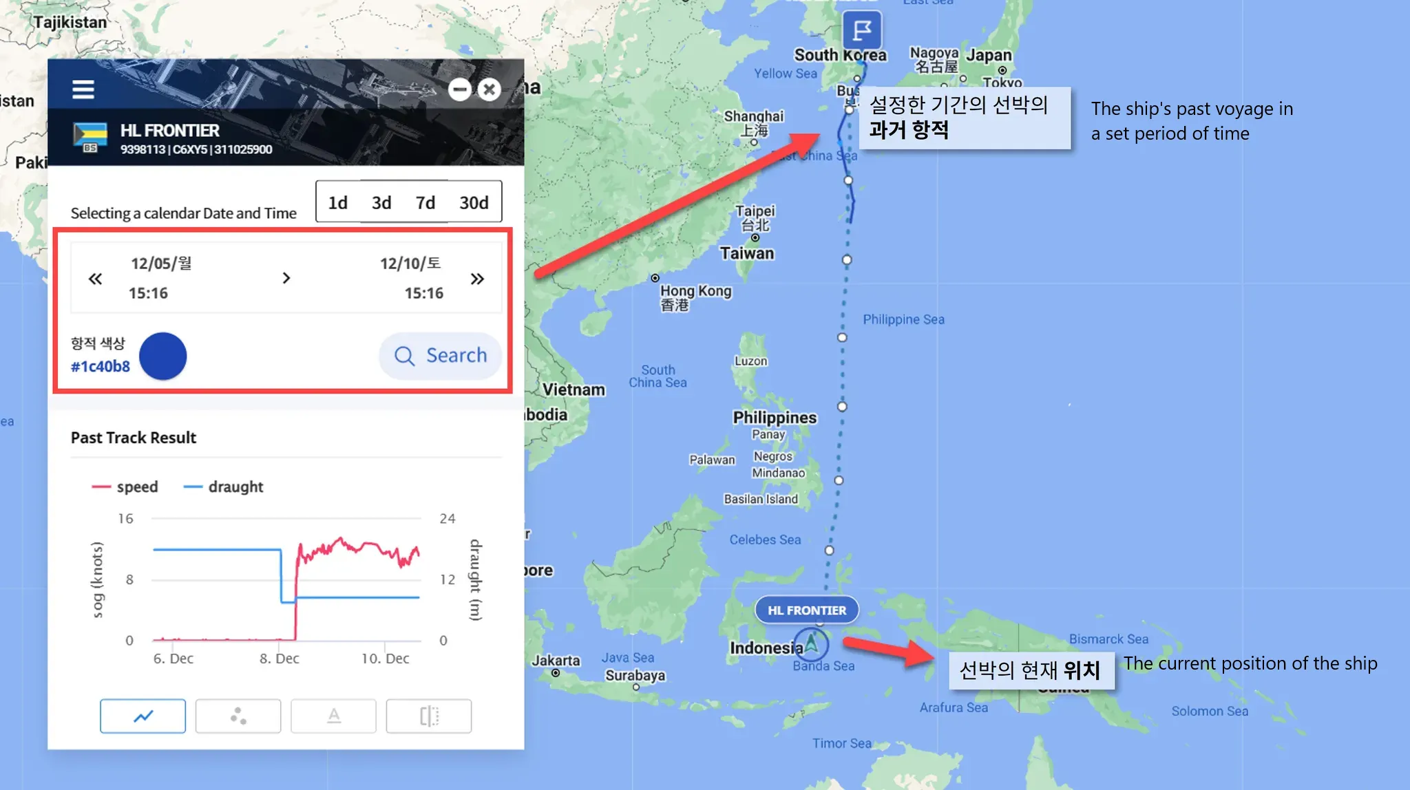 Once you have completed registering the ship and displaying it on the map, here’s how you can track the ship using Ship Insight.