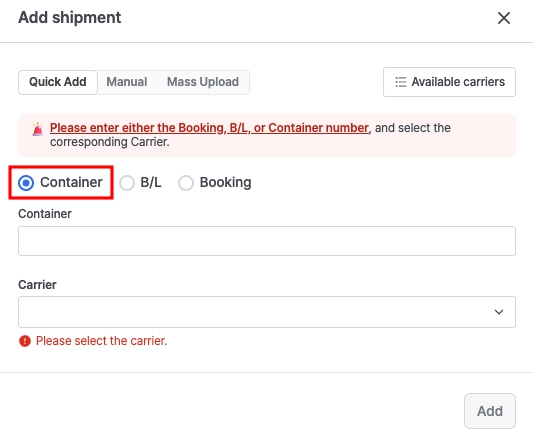 해당 기능은 Evergreen, HMM, KMTC, ONE, SM Line, WESTWOOD 선사의 화물에 대해 제공합니다.