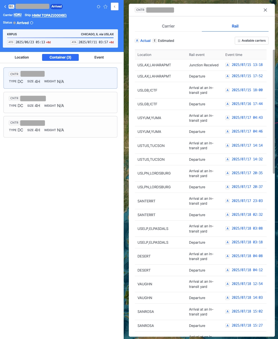 Rail 운송 구간의 이벤트 정보를 연동하여 화물 이동 추적의 정밀도를 향상시켰습니다.
