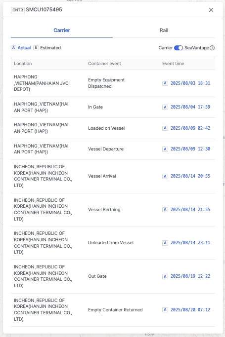 선사마다 다르게 표현하는 컨테이너 이벤트를 Seavantage가 분석·표준화하여 통합된 형태로 제공합니다.