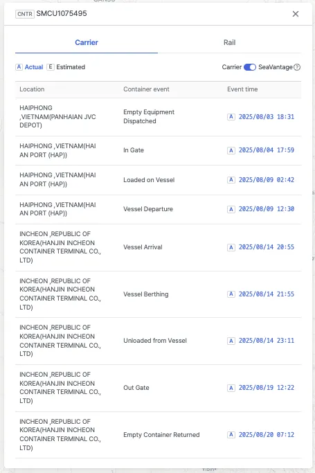 선사마다 다르게 표현하는 컨테이너 이벤트를 SeaVantage가 분석·표준화하여 통합된 형태로 제공합니다.