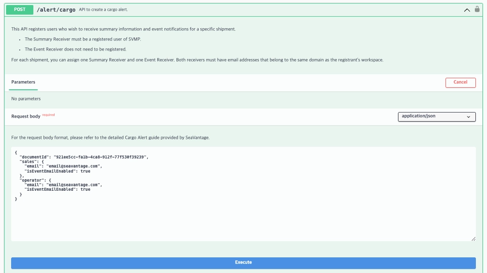 Request URL : [POST] https://insight.seavantage.com/api/alert/cargo