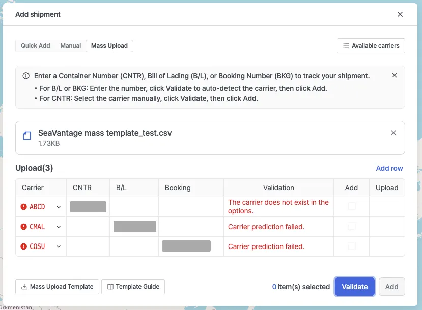 Mass Upload (Upload and register multiple shipments at once using a CSV file)