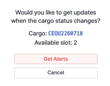 [Get Alerts] 버튼을 클릭하면해당 화물의 상태 변경 시 알림 메일을 자동으로 수신할 수 있습니다.