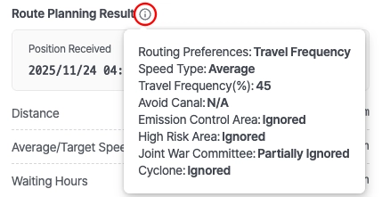 Routing에 필요한 옵션을 설정하거나 변경할 수 있는 메뉴 입니다. 원하는 조건에 맞춰 항로 결과를 조회할 수 있습니다.
