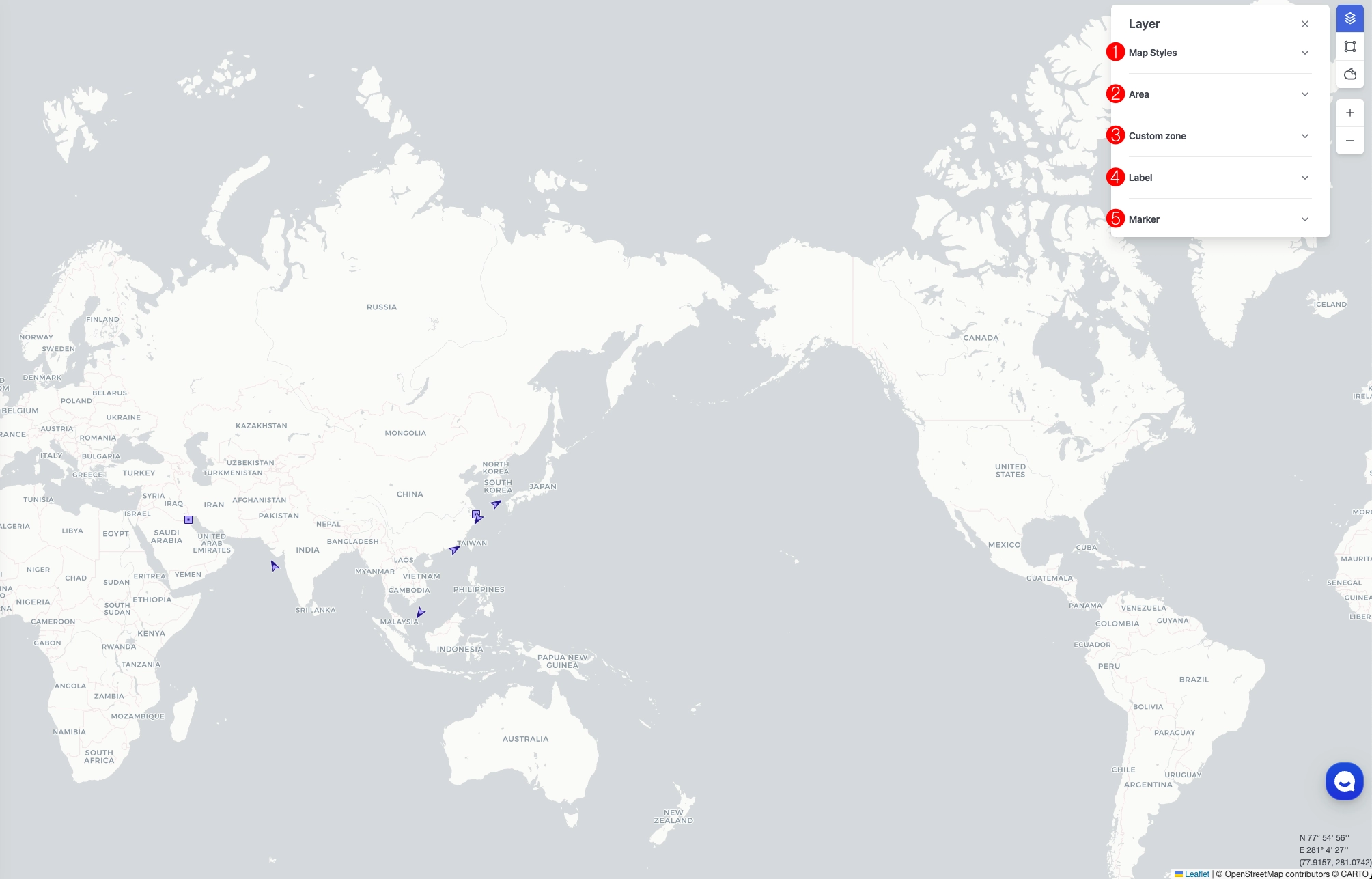 Layer 패널에서는 지도 스타일 및 지도 관련 레이어 옵션을 조절하는 기능입니다.