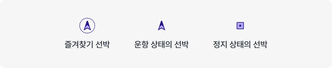 선박 항목을 클릭하면 선박 팝업을 볼 수 있으며 과거 항적 및 미래 예상 항적을 확인할 수 있습니다.