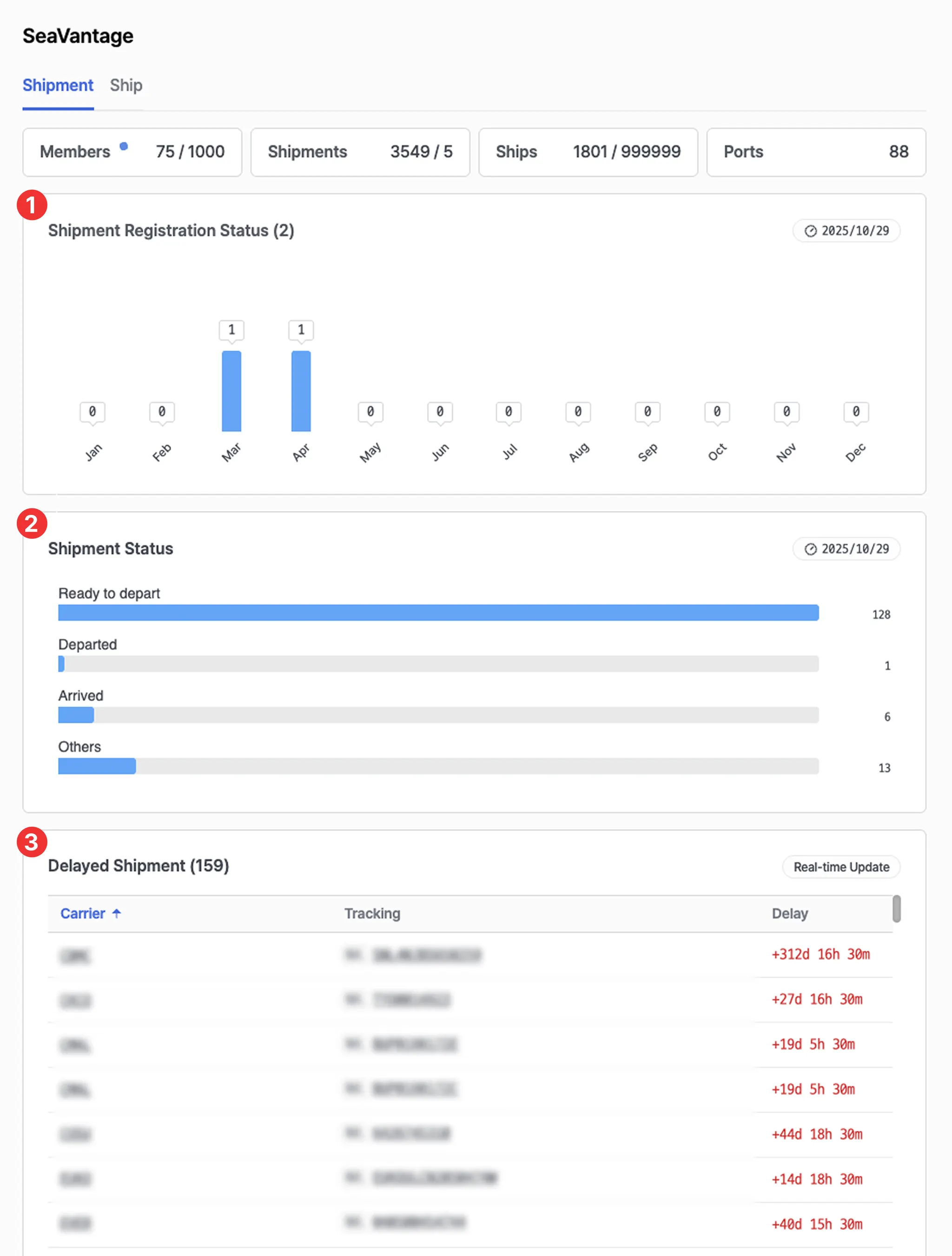 View the monthly shipment registration status.