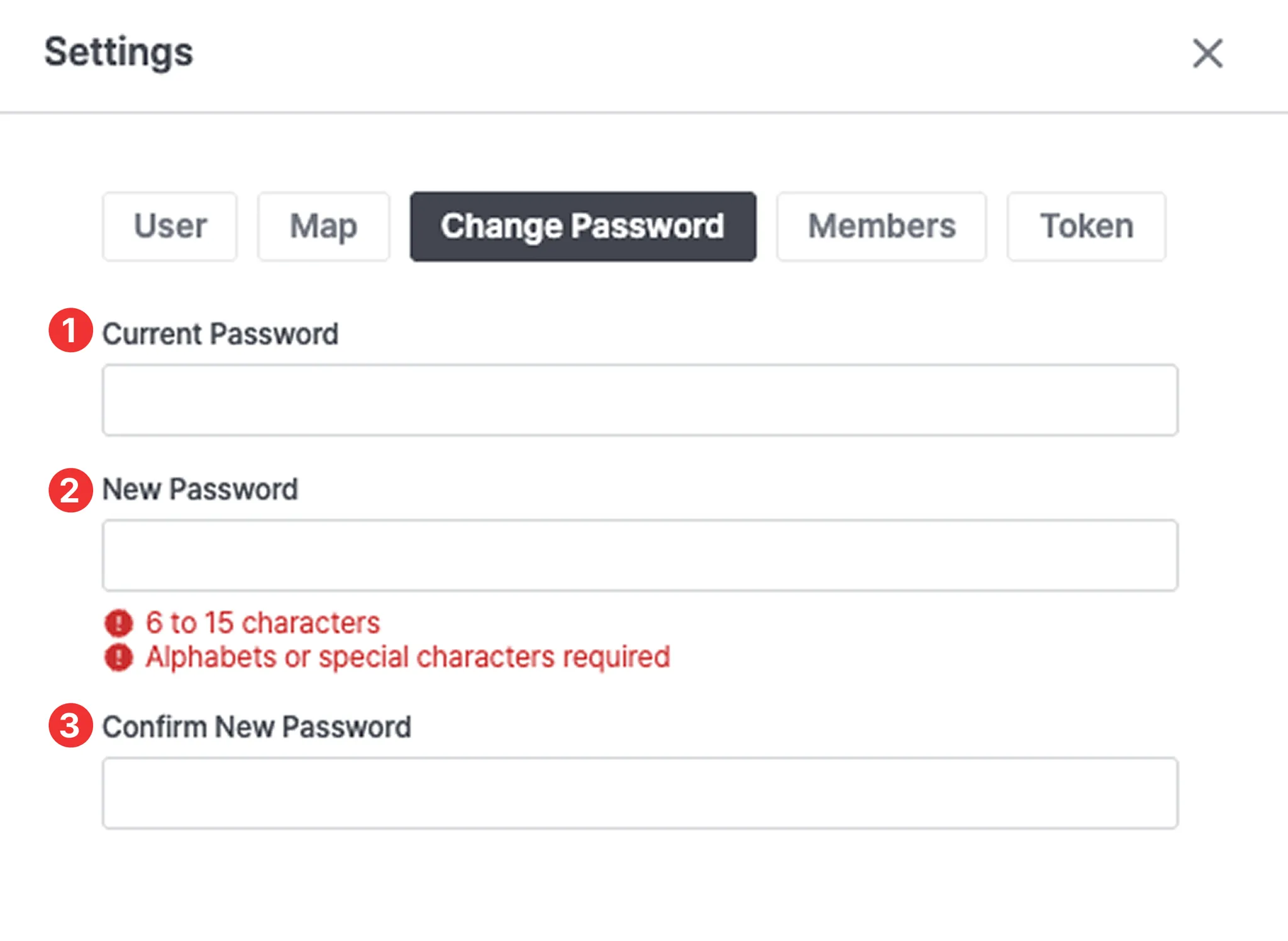 The password must be 6–15 characters long and include a combination of letters and special characters.