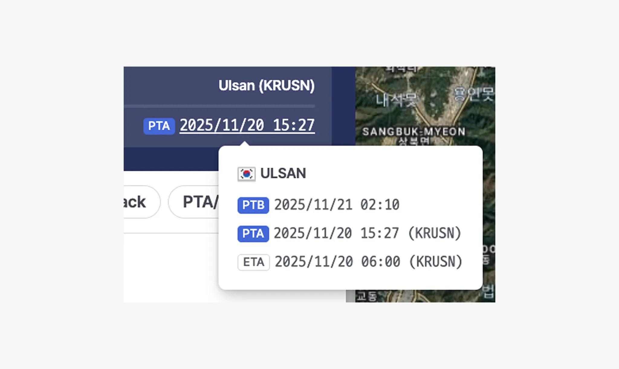 PTA | Predicted Time of Arrival at the estimated destination port |
