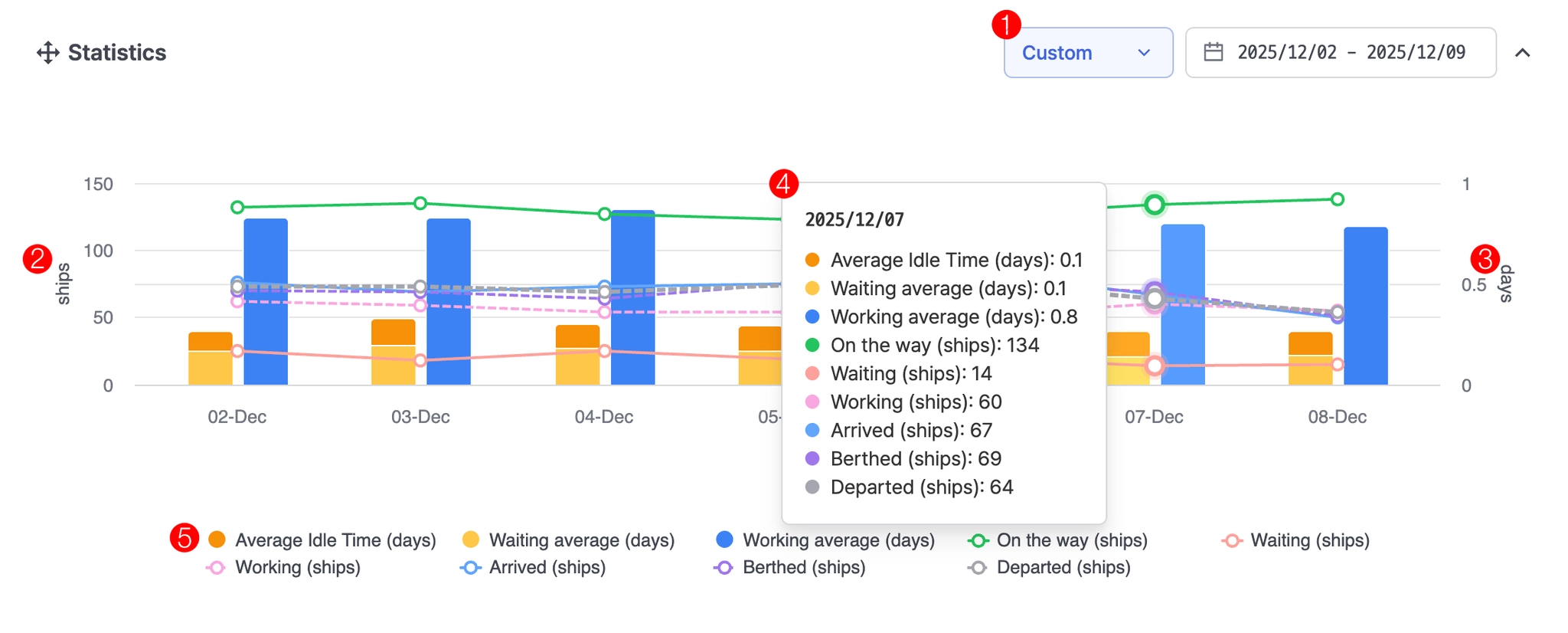 - Departed (ships) : 출발 선박 수 |