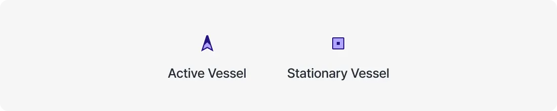 Vessel icons are displayed with different shapes and colors to indicate vessel type and status.