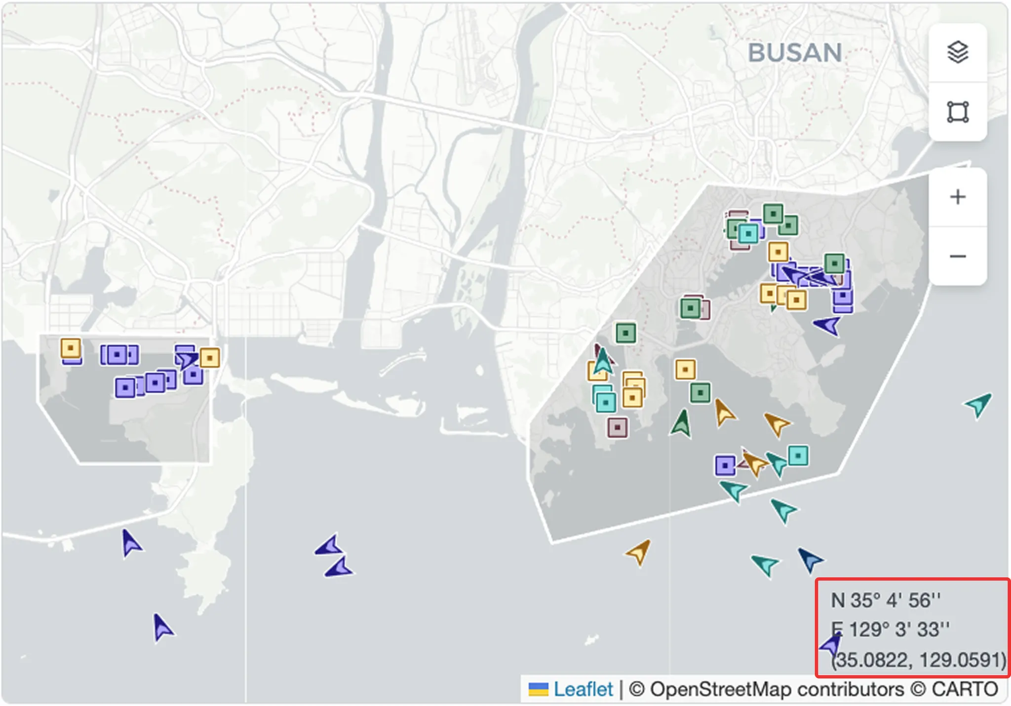 Vessels related to the selected port are displayed on the map, and you can check the port’s real-time congestion status.