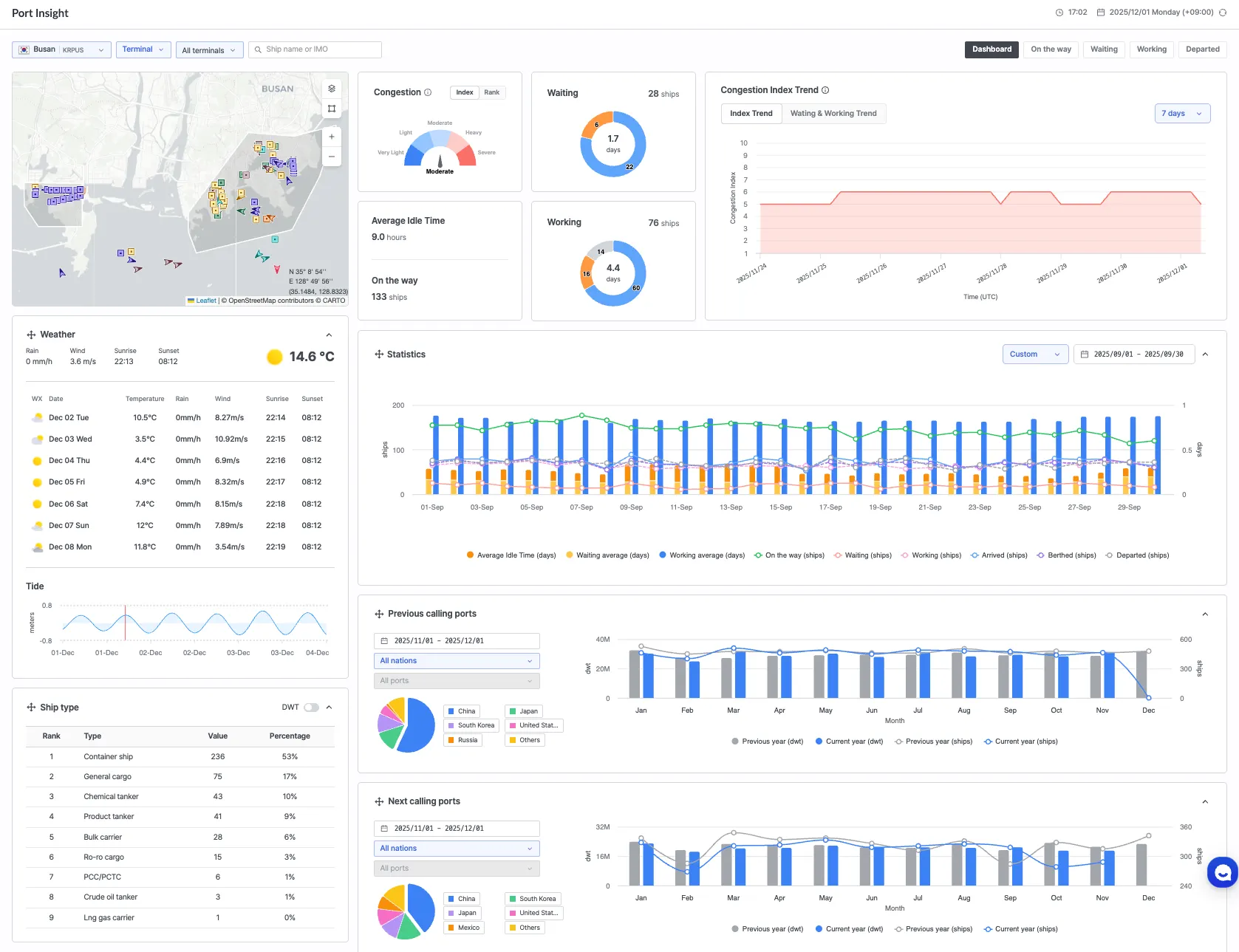 The previous version determined congestion using only the port ranking provided by Port Insight. The updated Congestion Index calculates congestion levels using multi-level historical congestion data for each port and expresses the result numerically. This provides more consistent and reliable congestion information.