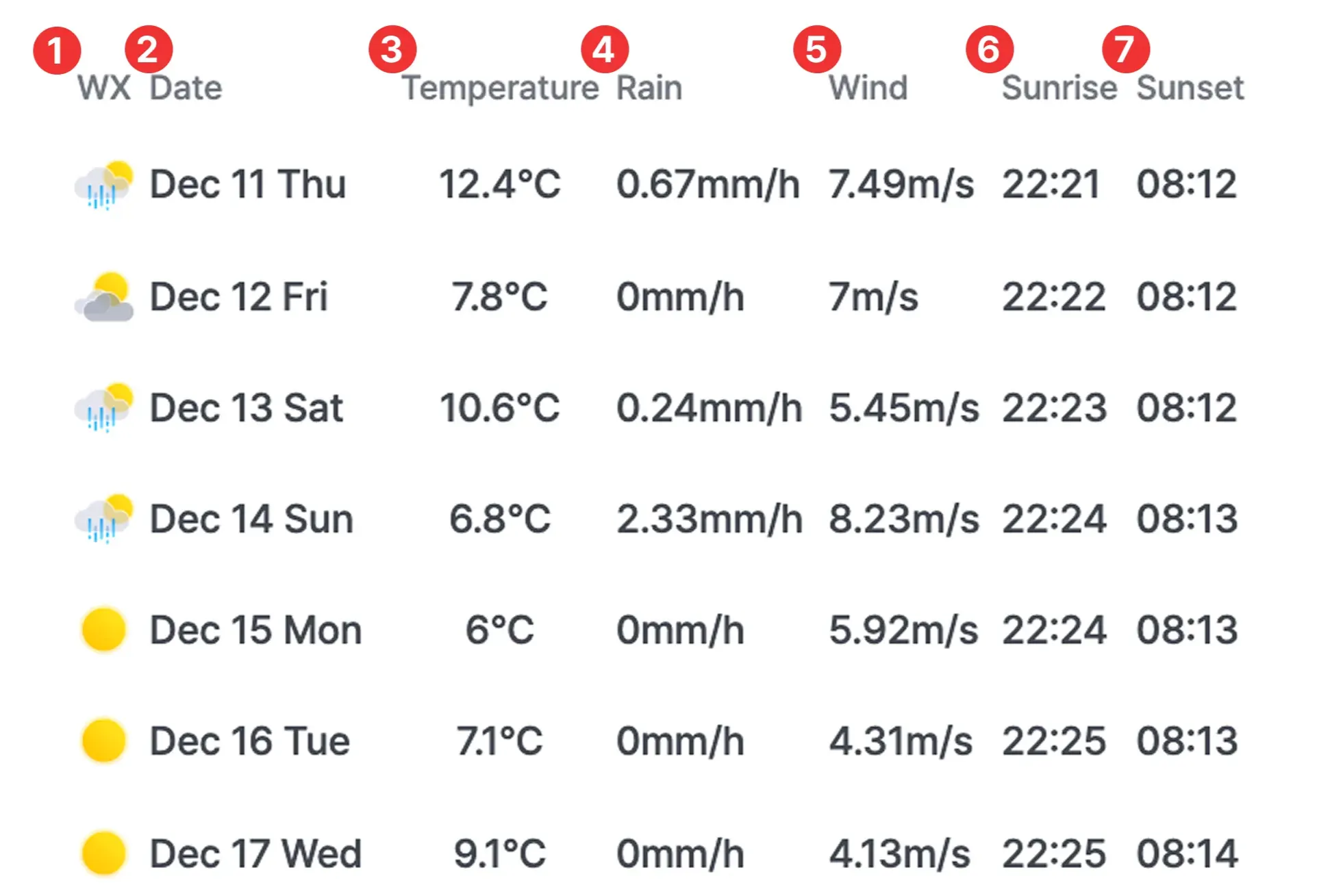 현재 시점의 날씨 정보를 확인할 수 있습니다.