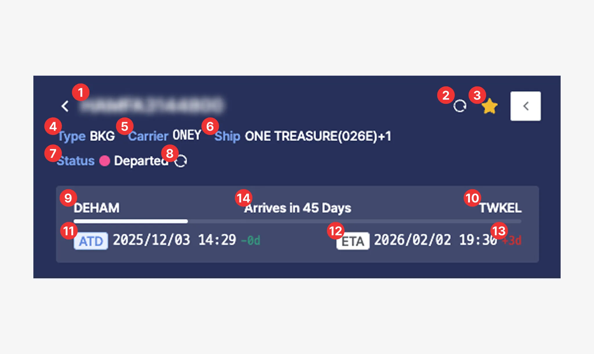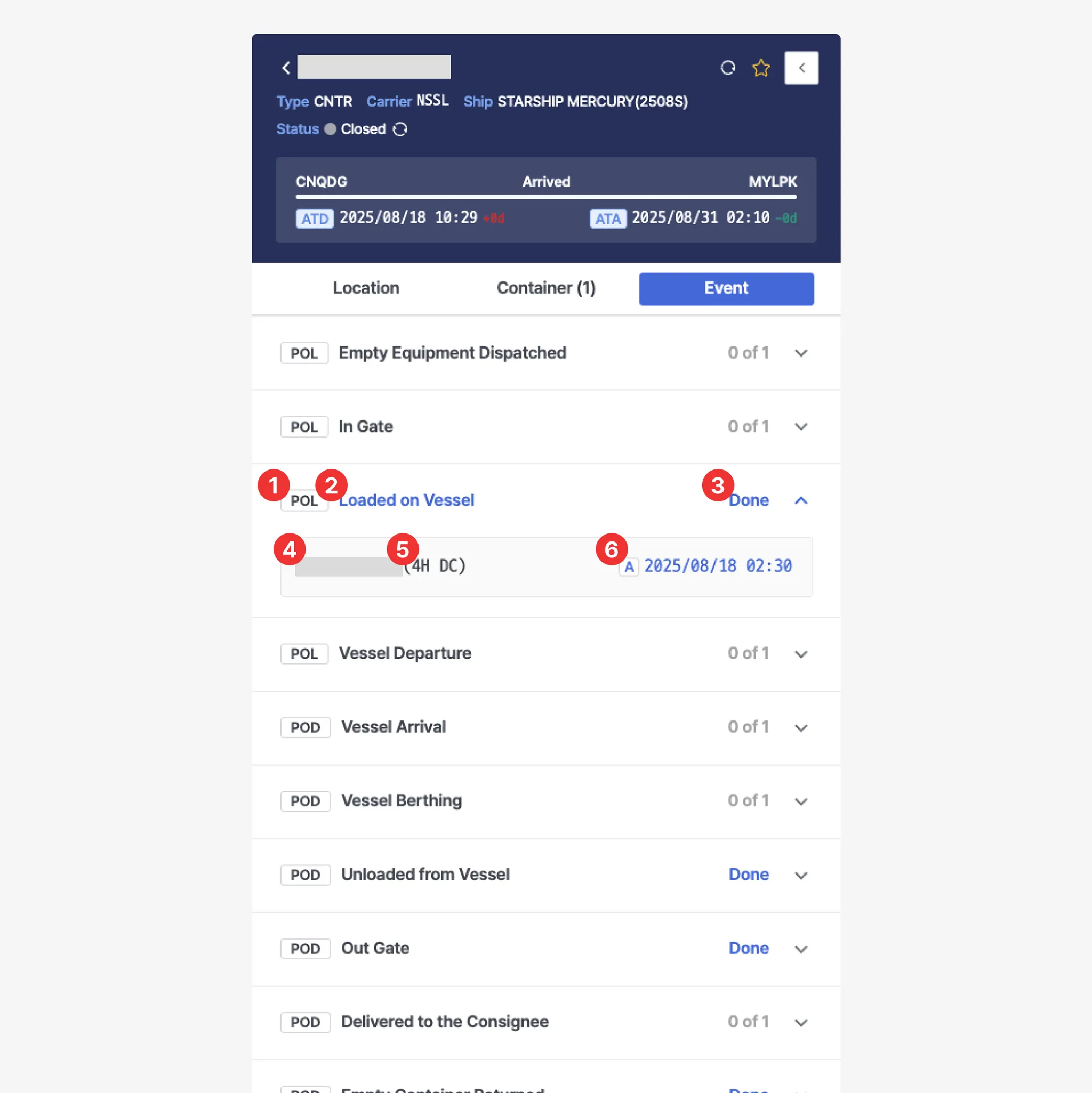- N of N : 선적 관련 전체 컨테이너 중 이벤트 발생 완료된 컨테이너 수 |