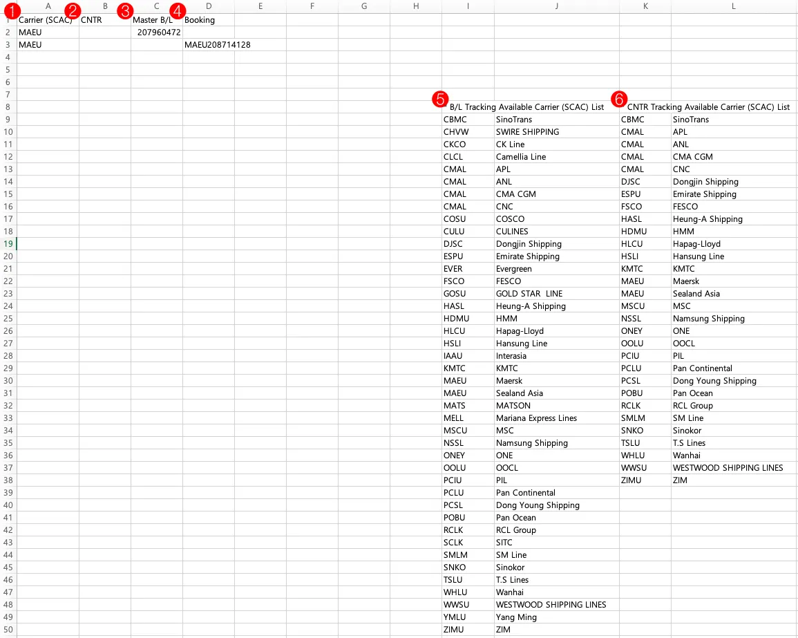 5 | B/L Tracking | M-B/L Tracking SCAC 리스트 |