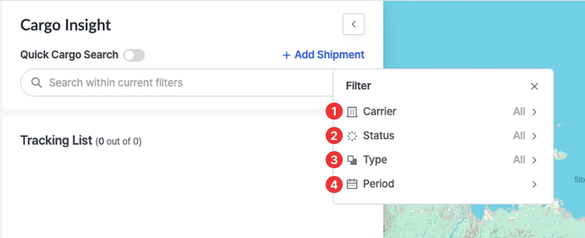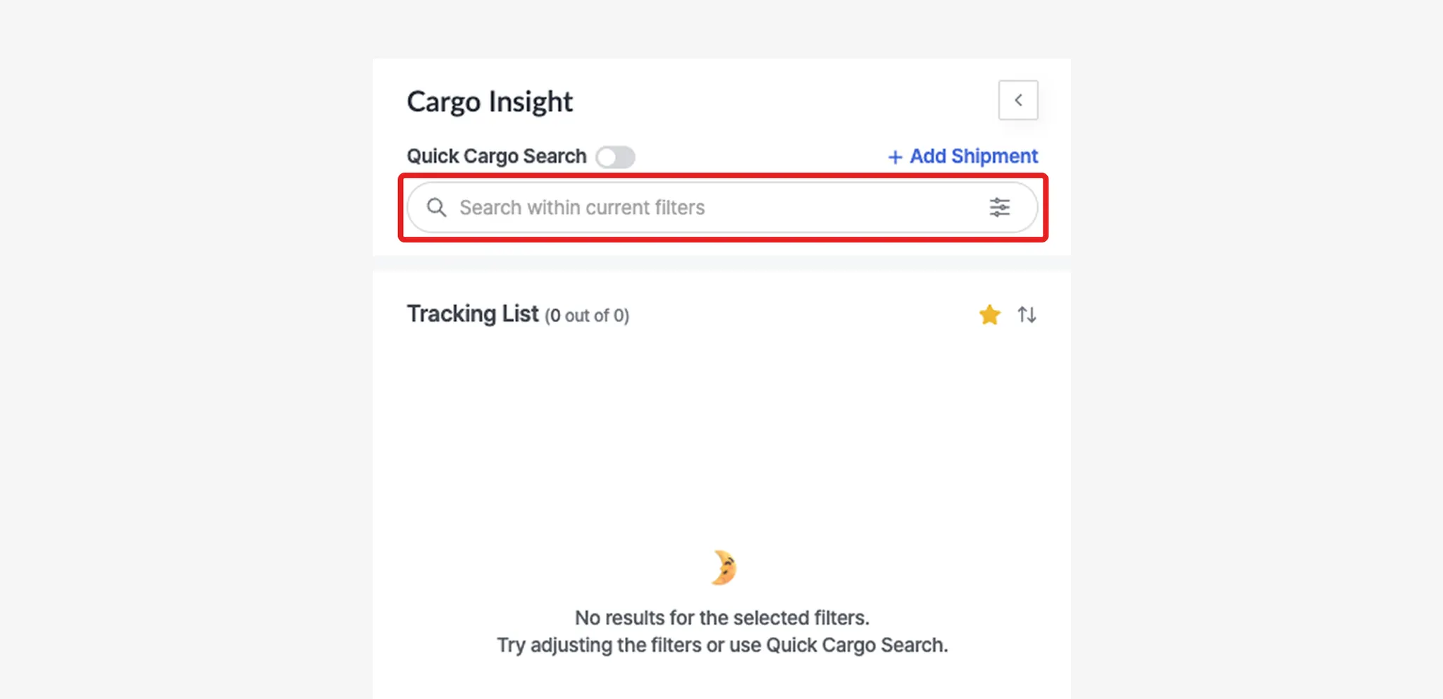 This feature allows users to search for shipments registered in Cargo Insight. Shipments can be searched using the standard search function or the Quick Cargo Search for faster access.