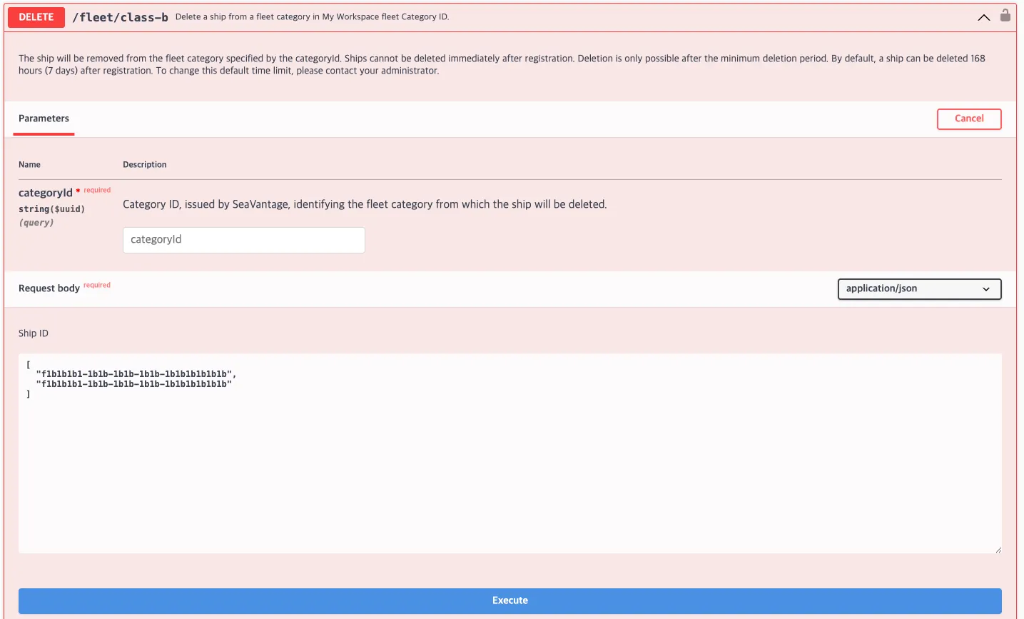 Request URL : [DELETE] https://insight.seavantage.com/api/fleet/class-b