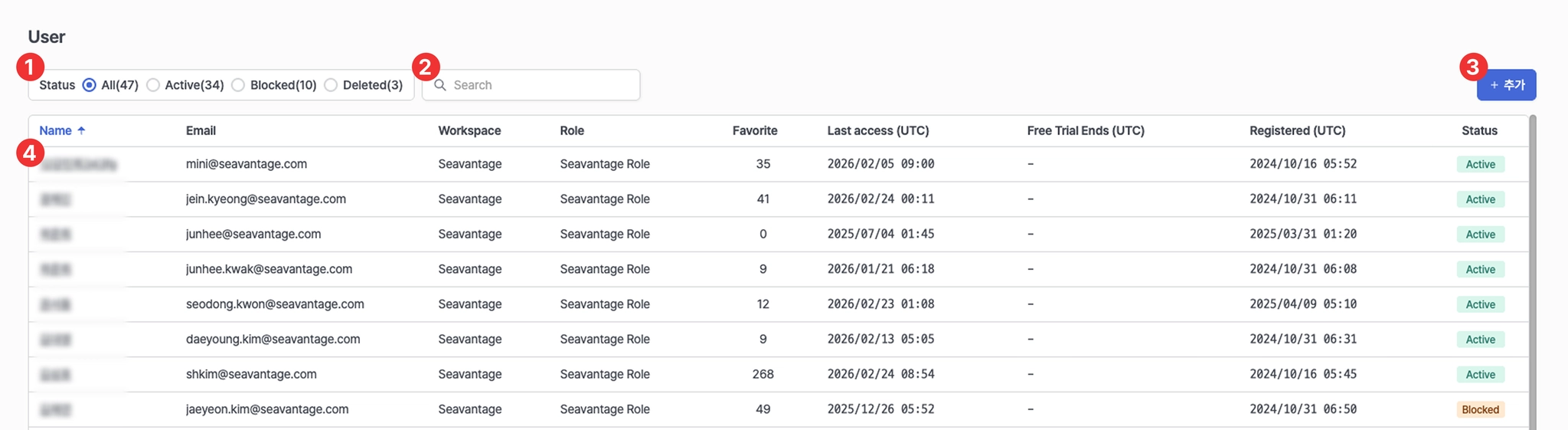 Name, Email 기준으로 검색할 수 있습니다.