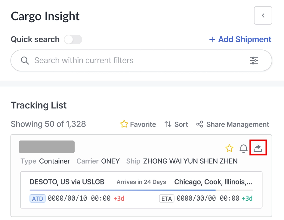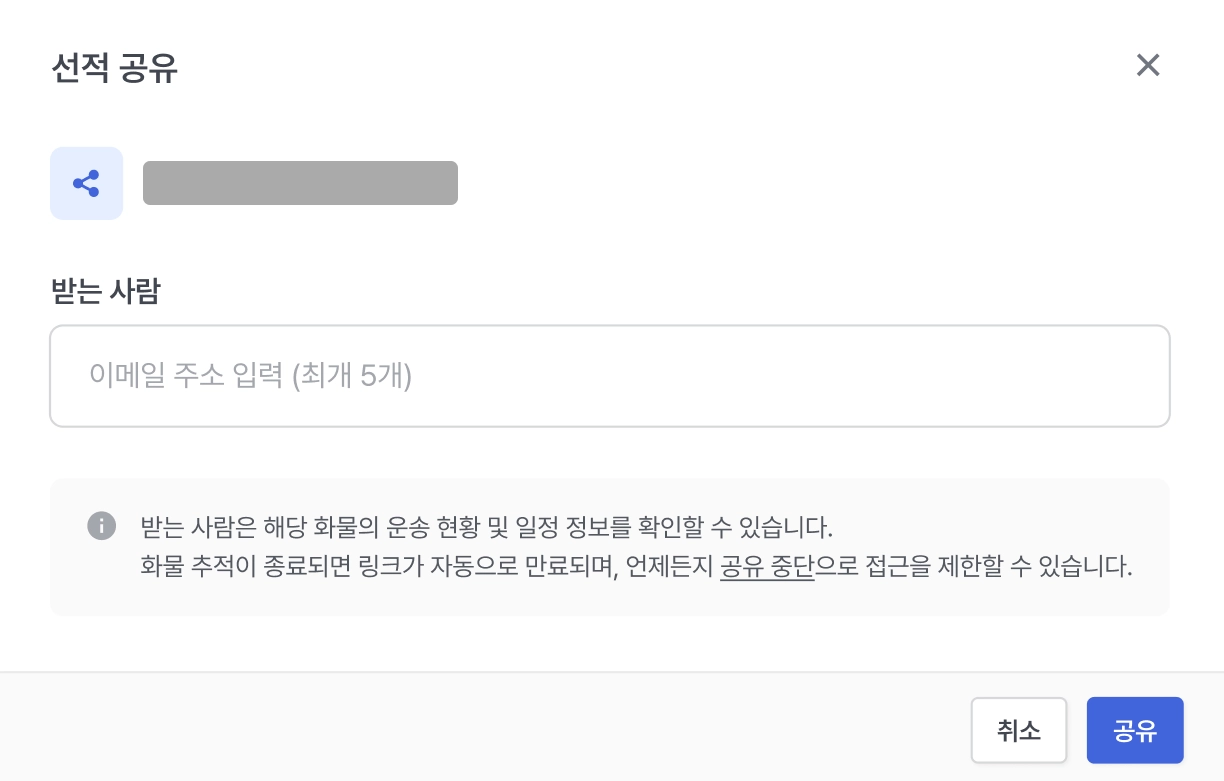 Tracking List 또는 선적 상세 화면에서 공유 버튼을 클릭합니다.
