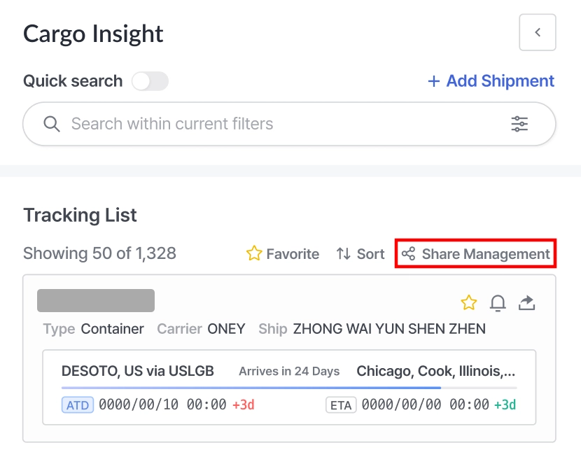 Tracking List에서 [Share Management] 버튼을 클릭합니다.