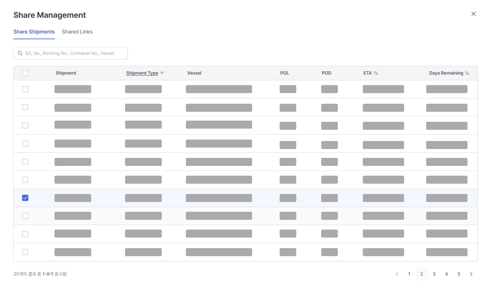 Share Management 화면에서 공유할 선적의 체크박스를 선택합니다.