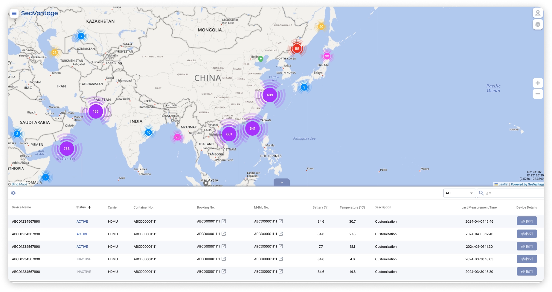 모니터링하기 위해서는 Device 정보와 선적 정보를 등록해야 합니다.