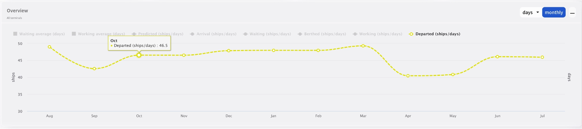 On the other hand, âBerthedâ shows information for the most recent day, so you can see trends in the latest working conditions for that port.