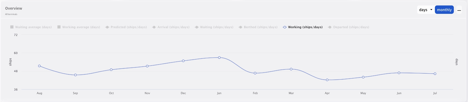 âWorkingâ means the number of ships working in the Berth area (Geofencing), based on a specific point in time (Local time 11:30).