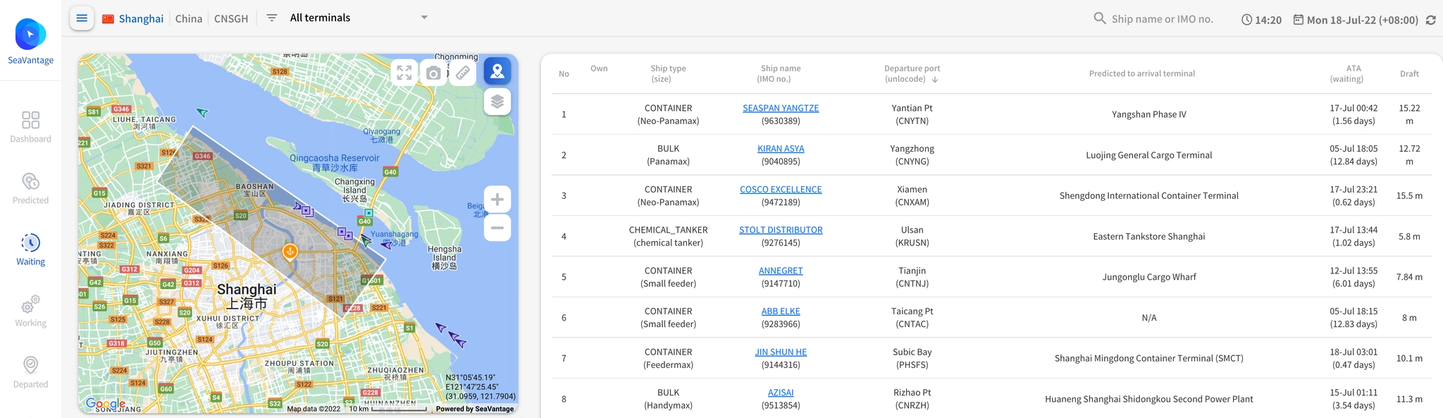It refers to the number of ships waiting in the Port area (Geofencing) and Anchorage based on a specific point in time (Local time 11:30).