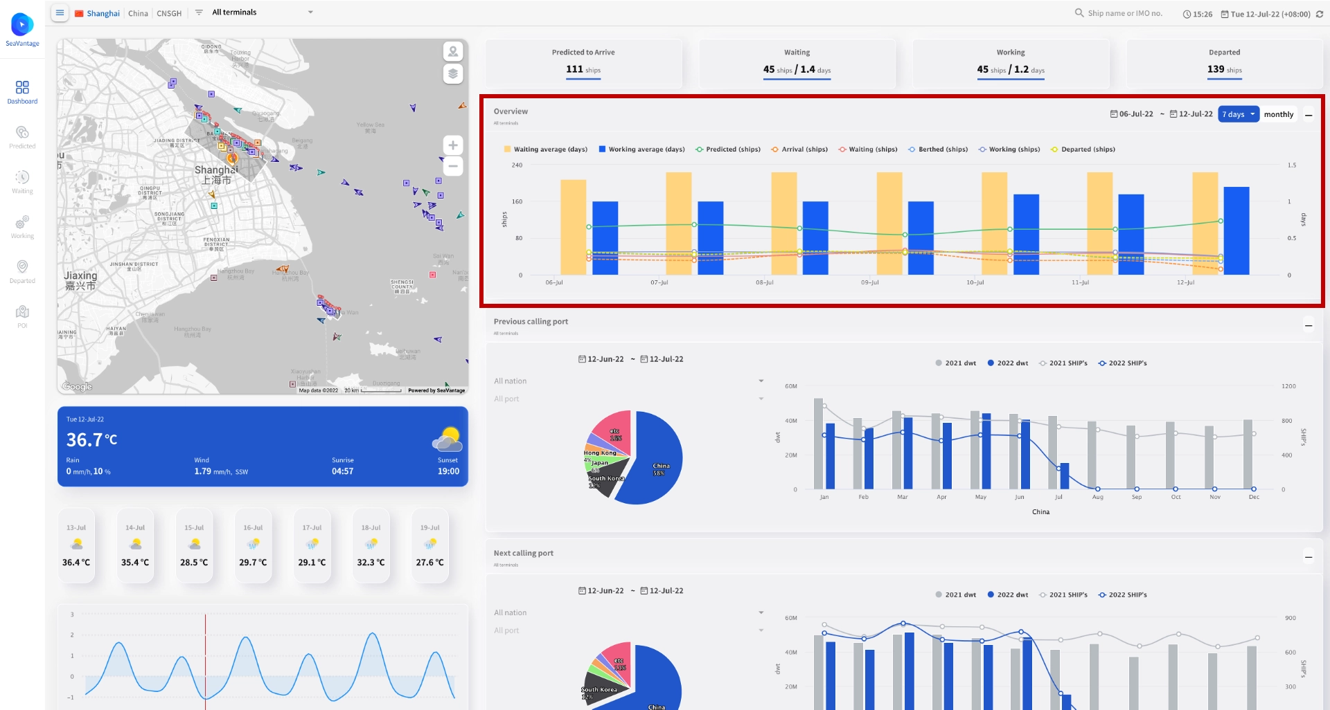 During the last day (11:30 the previous day to 11:30 today, Local Time), âBerthedâ refers to the number of ships berthed in the geofencing.