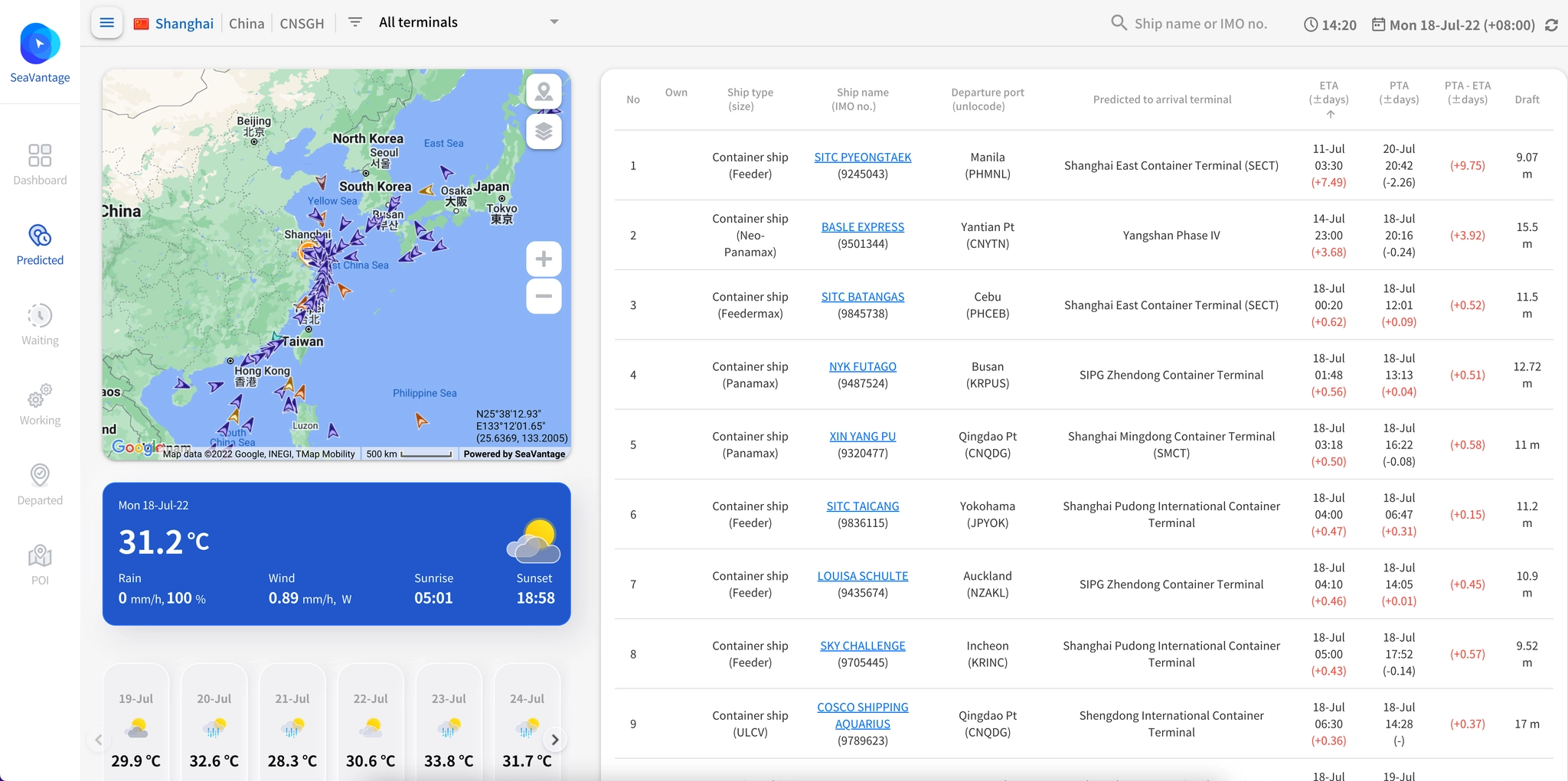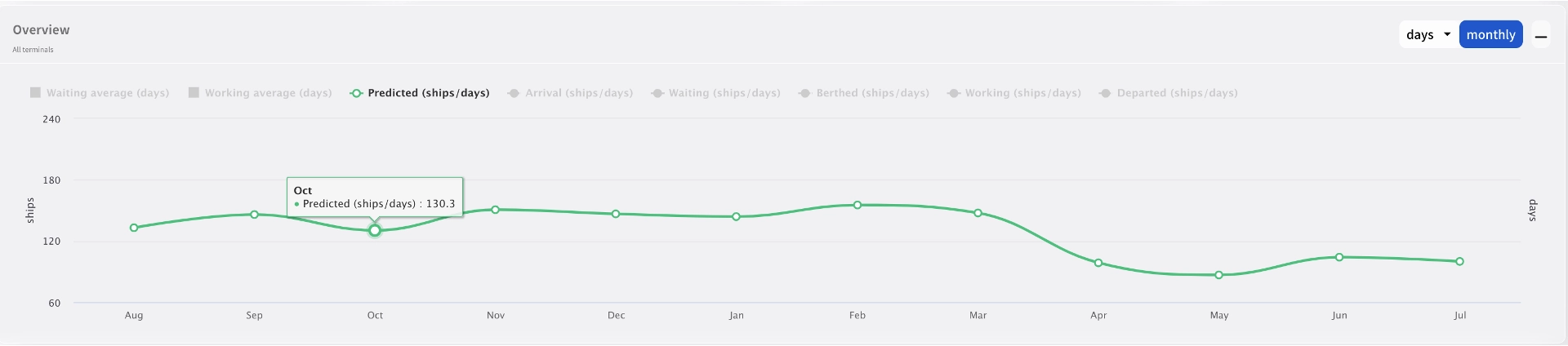 âPredictedâ means the number of ships coming toward the port, based on a specific time (Local time 11:30)