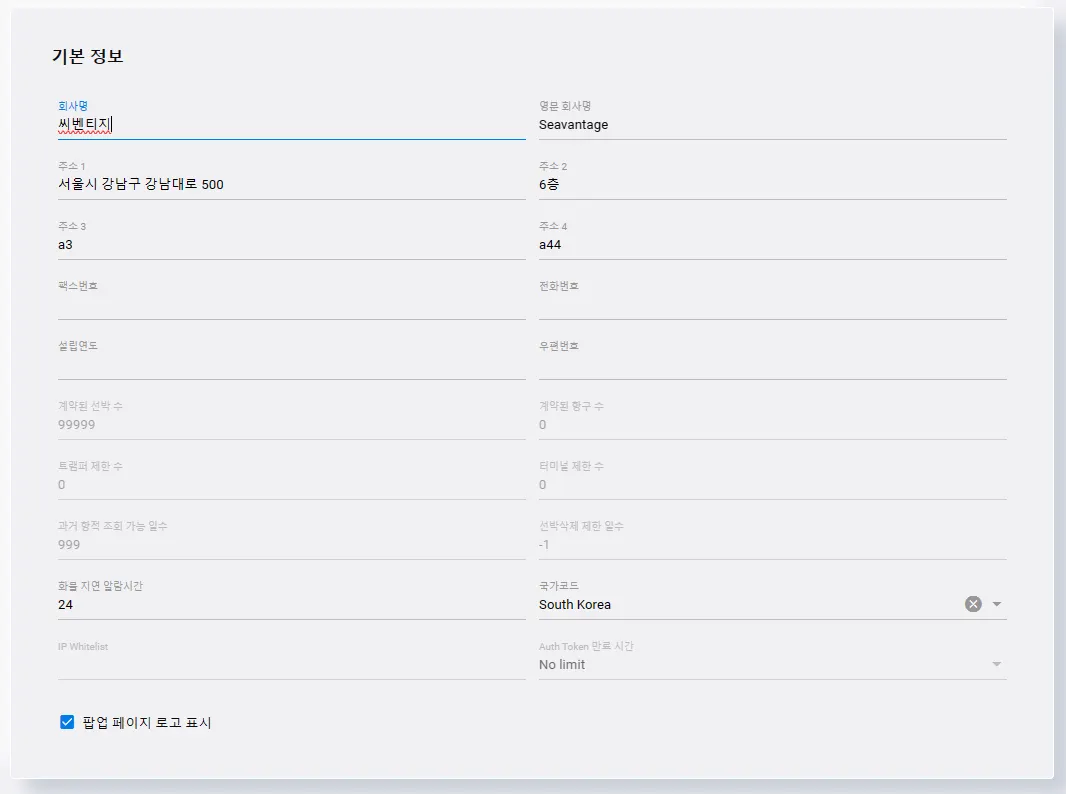 Admin : User 추가, 회사 선박 메뉴 등록 등 다양한 옵션을 설정할 수 있습니다.
