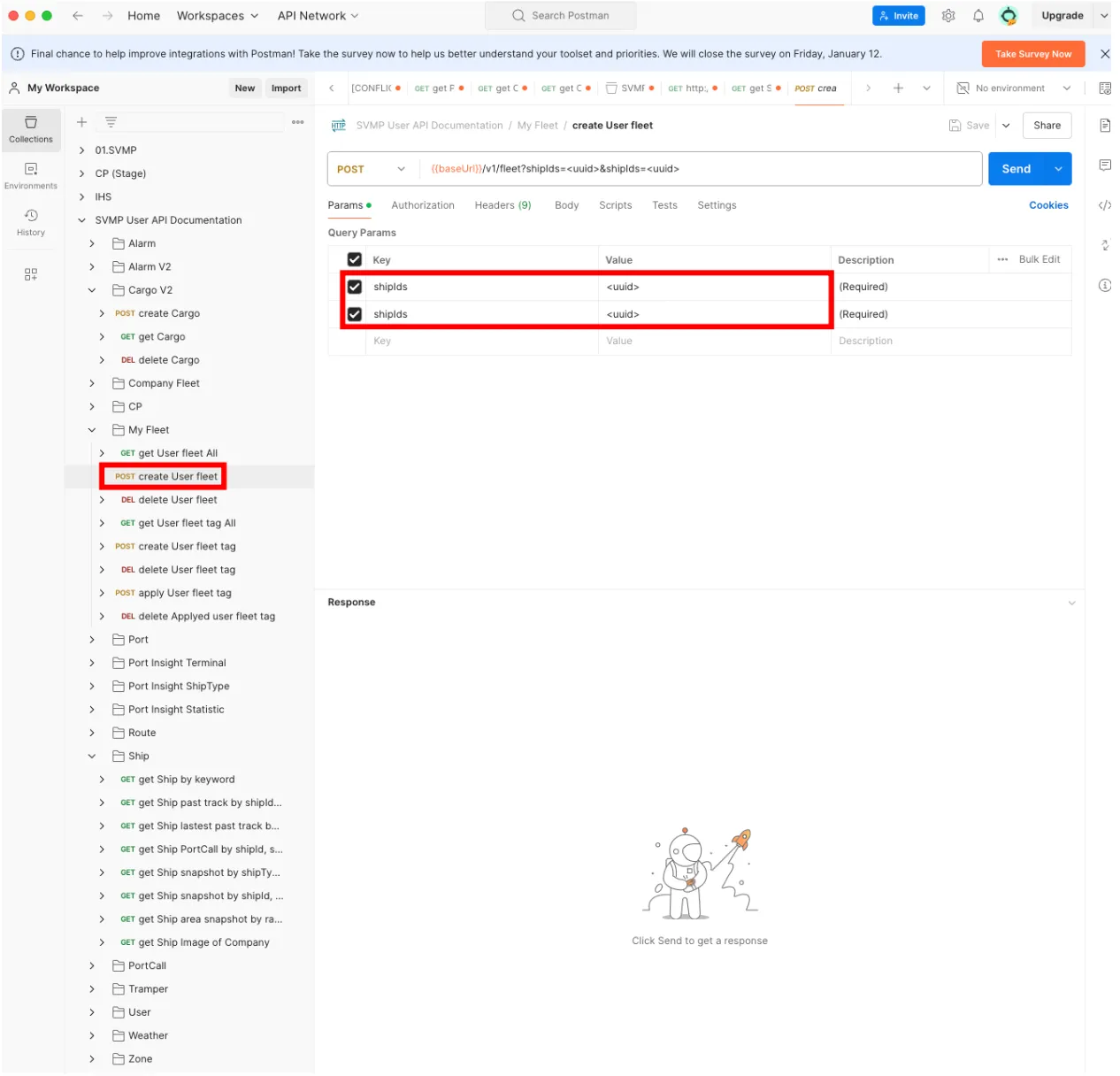 3. Register the vessel by entering the Ship ID of the vessel inquired in order 1 through the Fleet - create User Fleet API.