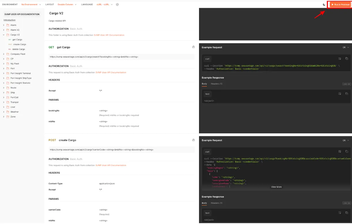 Once you register M-B/L, please click (get) get Cargo API on Cargo V2 tag for BL data tracking and authenticate.