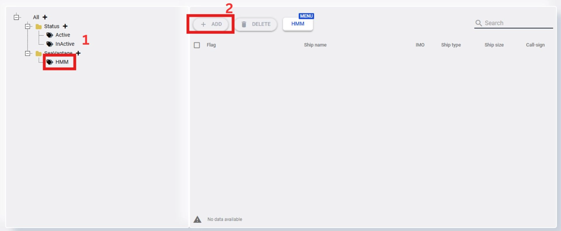 Click on the newly created sub-menu and then click the ‘Add’ button to add a ship.